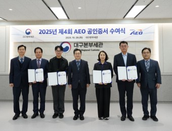 대구세관, AEO 공인증서 수여…관세조사 면제 등 혜택 대구본부세관은 '제3회 관세청 AEO 심의위원회' 심의를 거쳐 신규·갱신 공인을 획득한 4개 기업에 수출입안전관리우수업체(AEO) 공인증서를 수여했다고 28일 밝혔다.이번에 인증받은 기업은 에스엘, 구영테크, 일지테크, 관 . . .